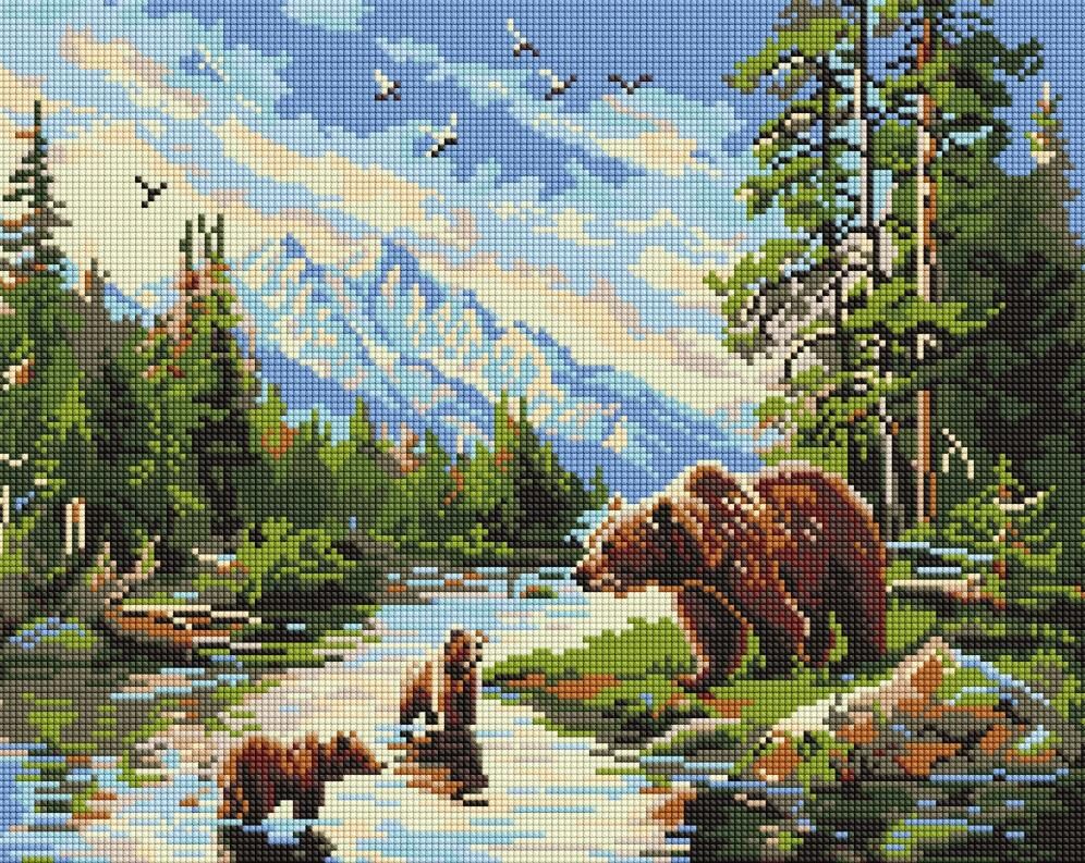 Алмазна мозаїка 40х50 AMO20089 Ведмедиця і ведмежата "Ідейка"