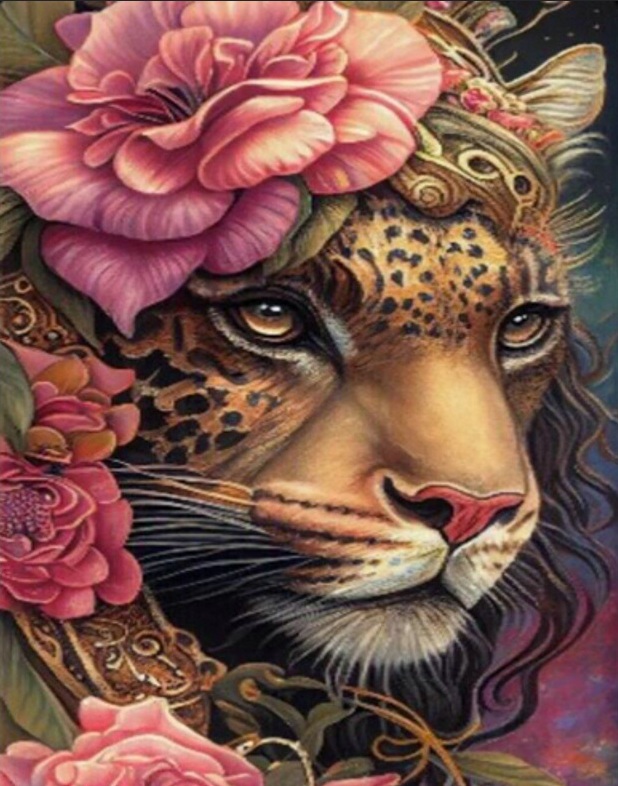 Алмазна мозаїка 40х50 JSFH85885 Леопард у яскравих квітах "Strateg"