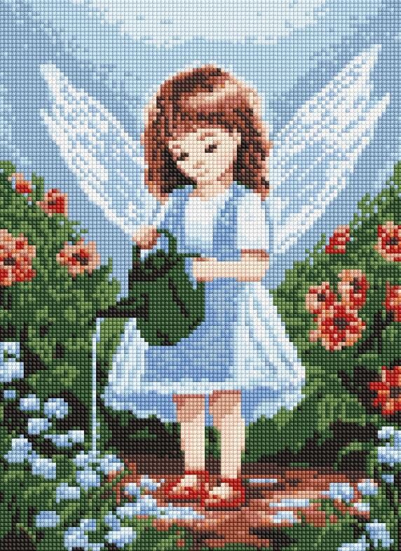Алмазна мозаїка б/підрамн 30х40 AMC20191 Янголятко в саду "Ідейка" (порвана упаковка по приходу)