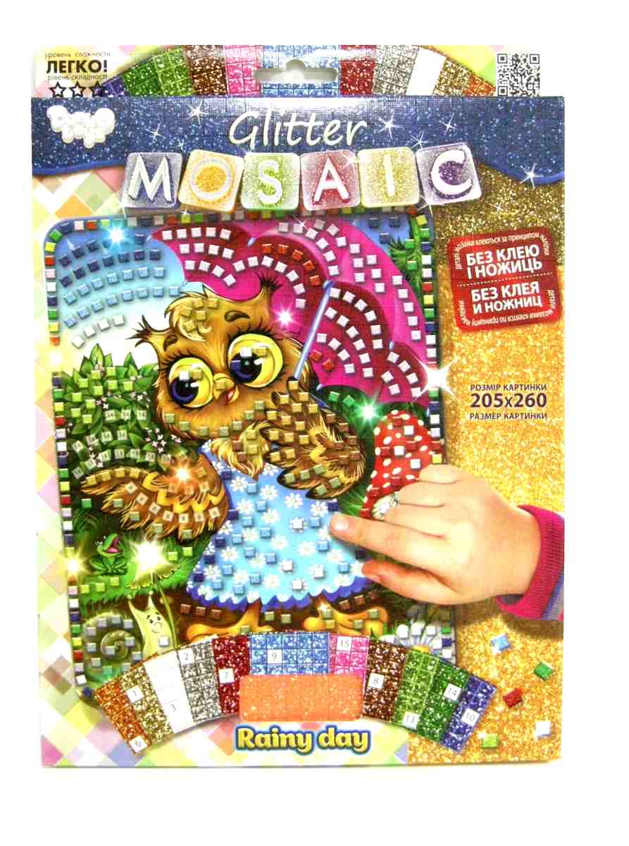 Блискуча мозаїка "Glitter Mosaic" це креативна творчість, що розвиває фантазію,художній смак і долучає до мистецтва. Метод відтворення картин за номерами простий і принесе масу задоволення. Ви можете прикрасити картину глітерними наліпками на свій розсуд. Розмір картини 20,5х26,0см.Розмір упаковки 21х27х1,5см. Вікова група 4+
