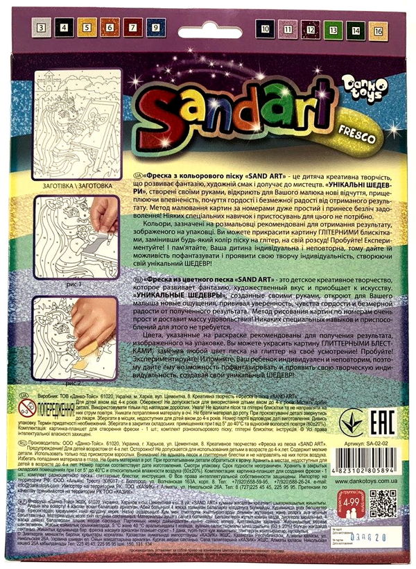 набір для творчості фреска з кольорового піску Sandart Fresco SA-02-02 поні малює