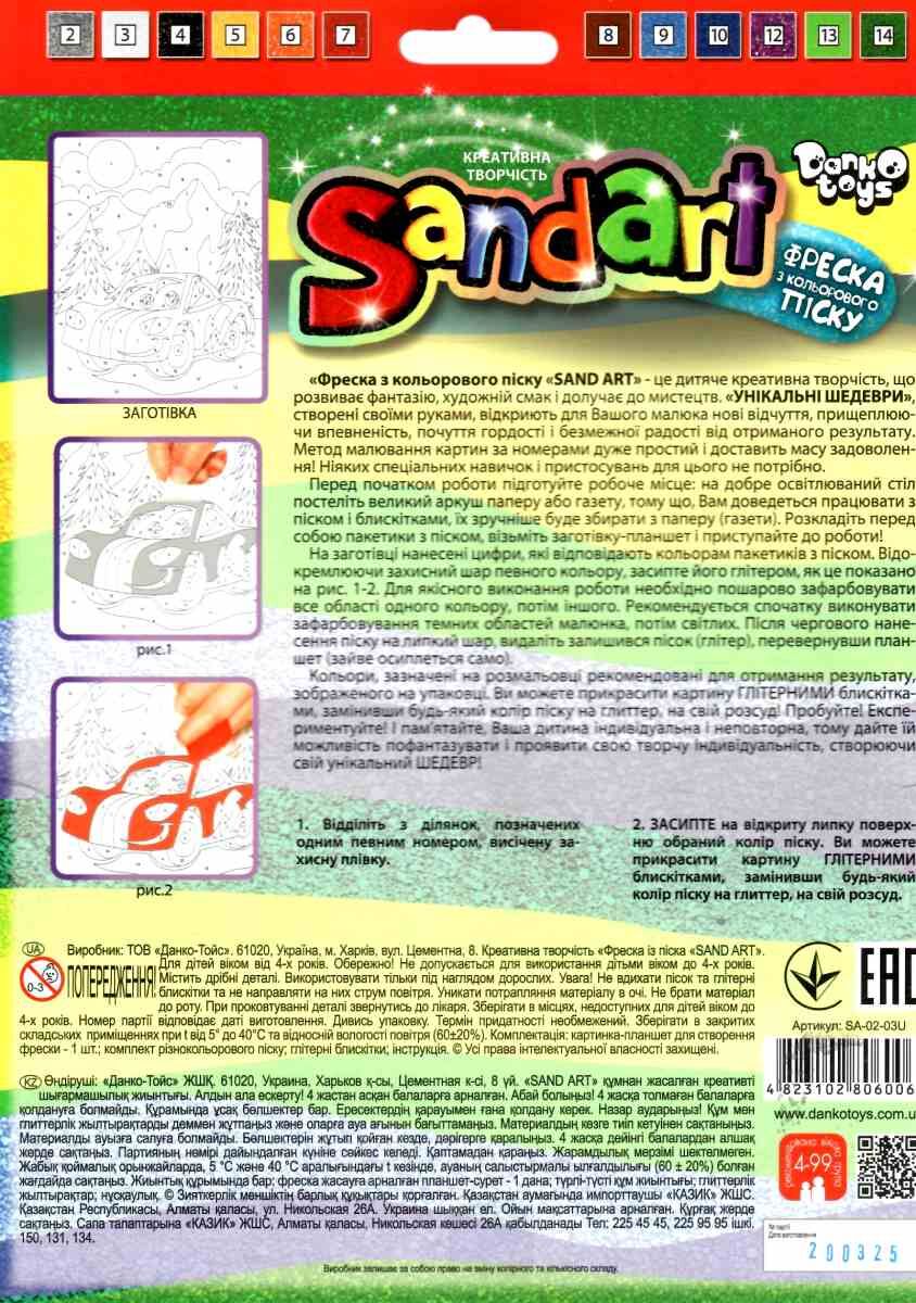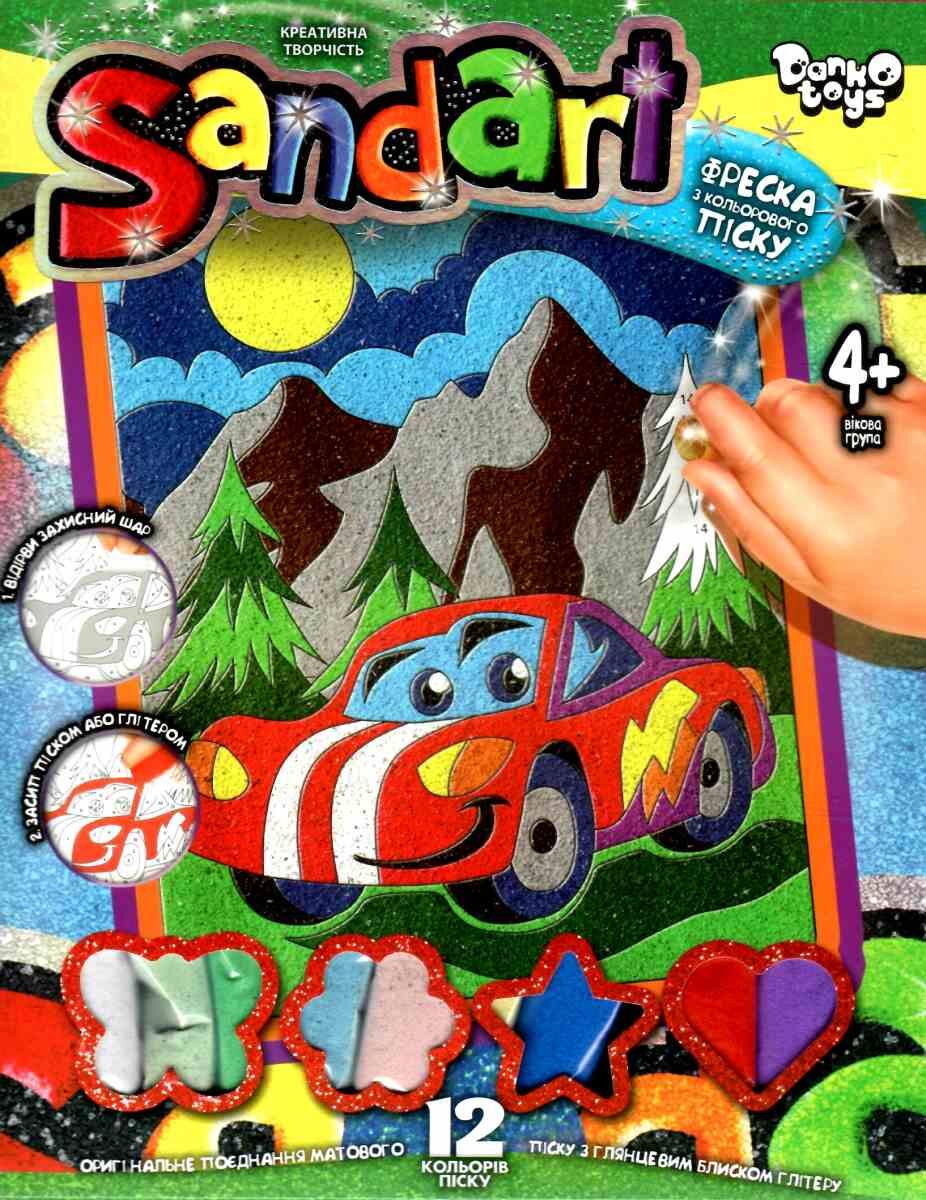 набір для творчості фреска з кольорового піску Sandart Fresco SA-02-03 машинка