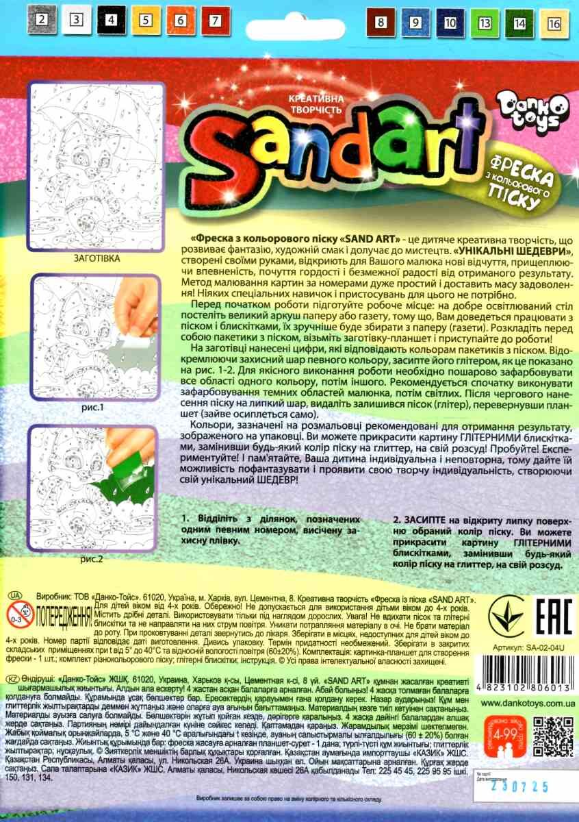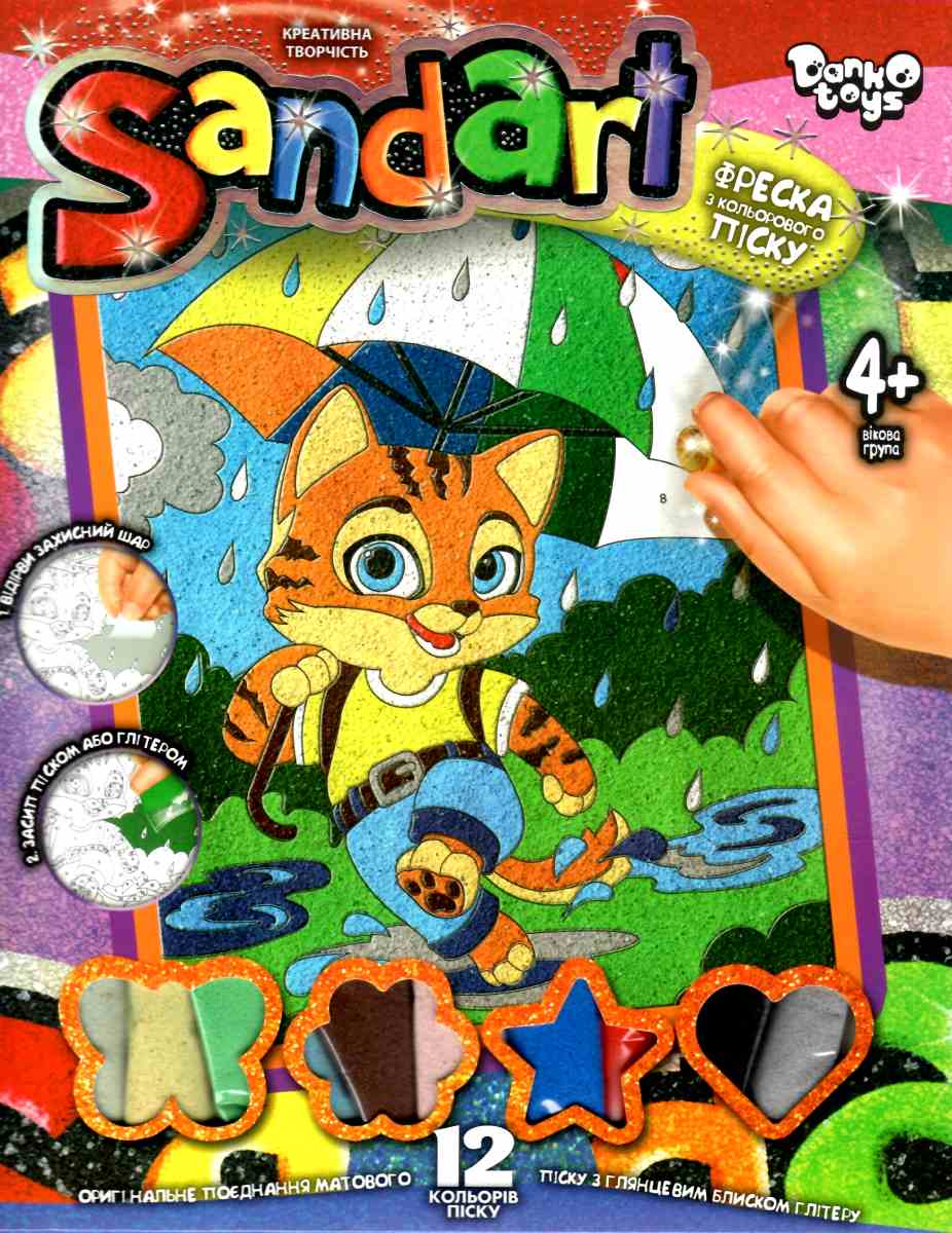 набір для творчості фреска з кольорового піску Sandart Fresco SA-02-04 тигреня під зонт