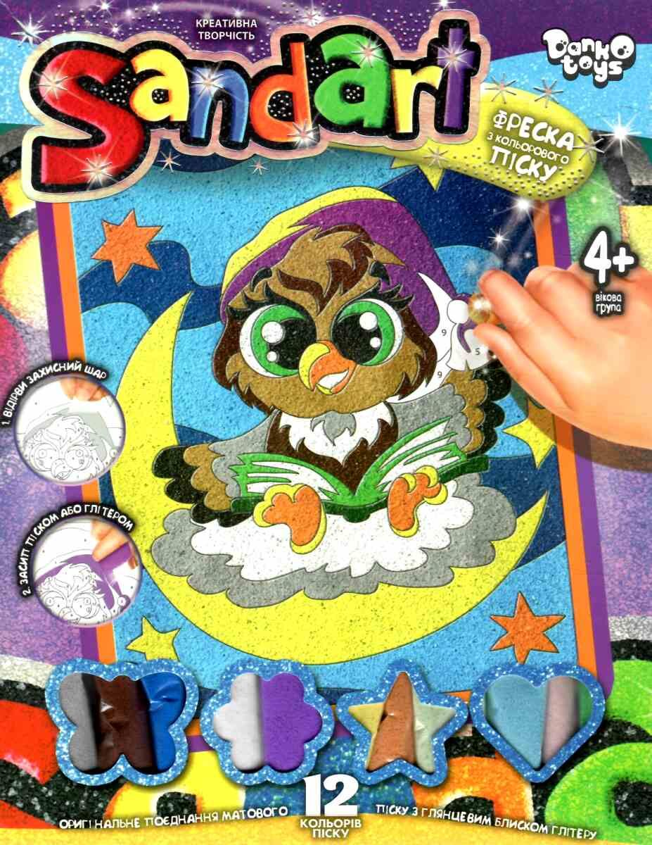 набір для творчості фреска з кольорового піску Sandart Fresco SA-02-06 сова на місяці