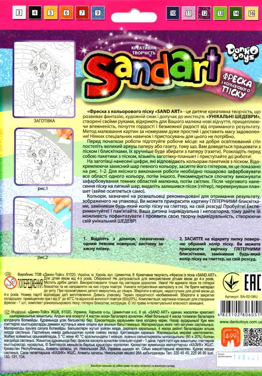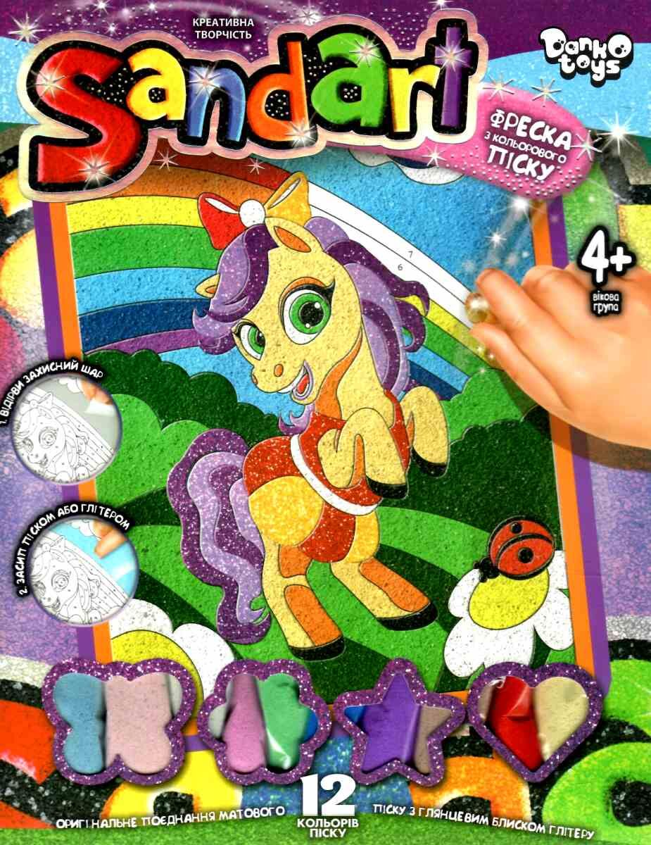 набір для творчості фреска з кольорового піску Sandart Fresco SA-02-08 поні та радуга