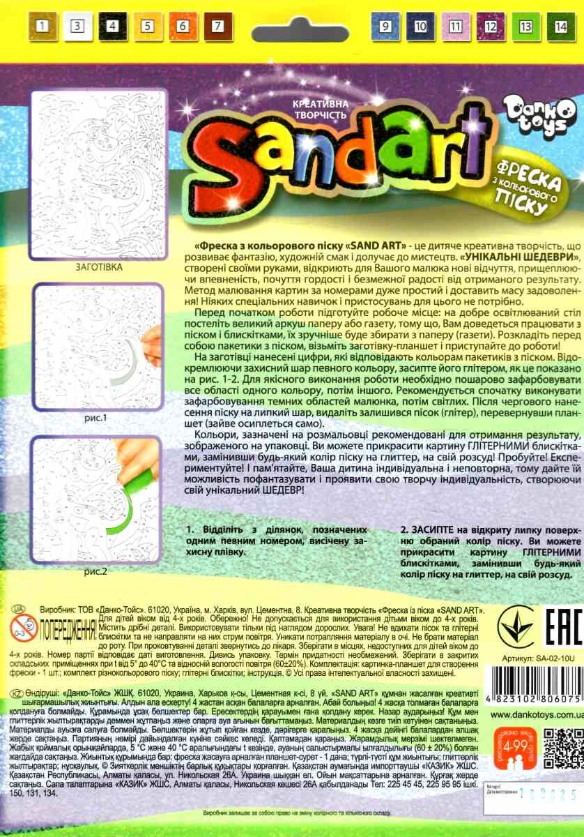 набір для творчості фреска з кольорового піску Sandart Fresco SA-02-10 динозавр