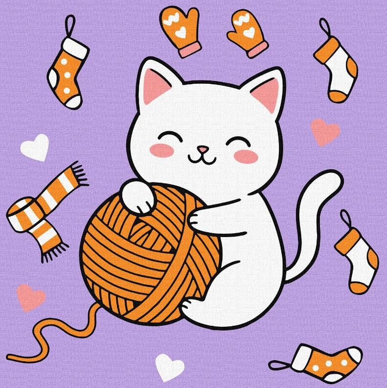 Розпис по номерах 25х25 КНО1235 Котик і клубочок 3 "Ідейка"