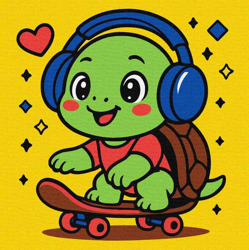 Розпис по номерах 25х25 КНО1290 Черепашка на скейті "Ідейка"