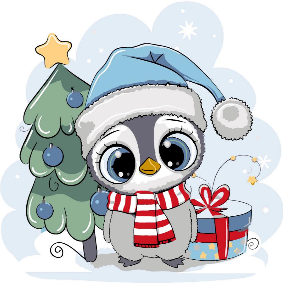Розпис по номерах 30х30 ES-0895 Пінгвін біля ялинки "Strateg"