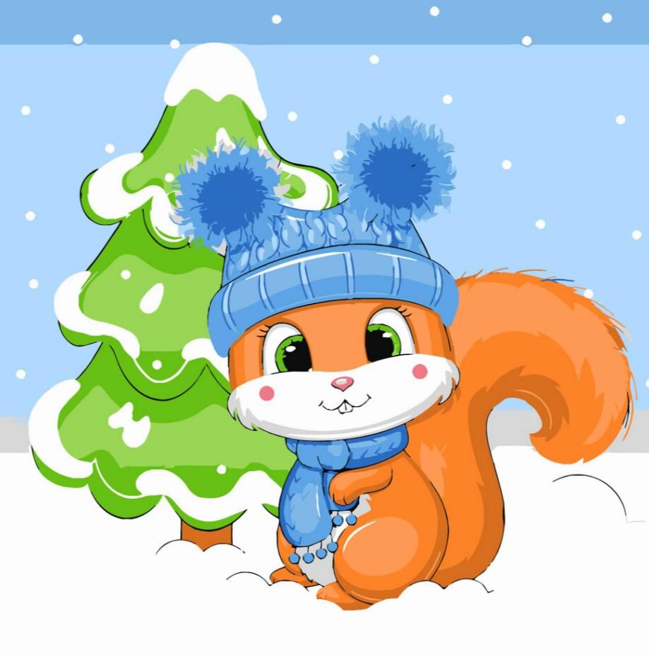 Розпис по номерах 30х30 ES-0896 Білочка біля ялинки "Strateg"