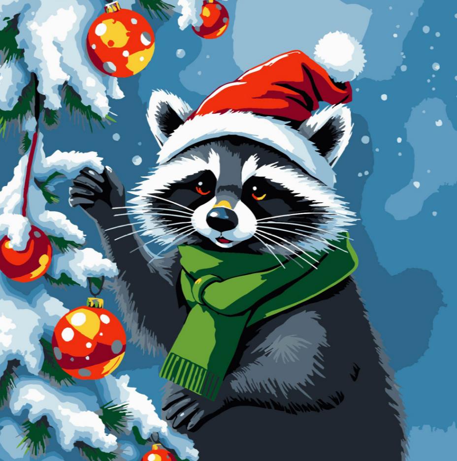 Розпис по номерах 30х30 ES-0898 Єнот прикрашає ялинку "Strateg"