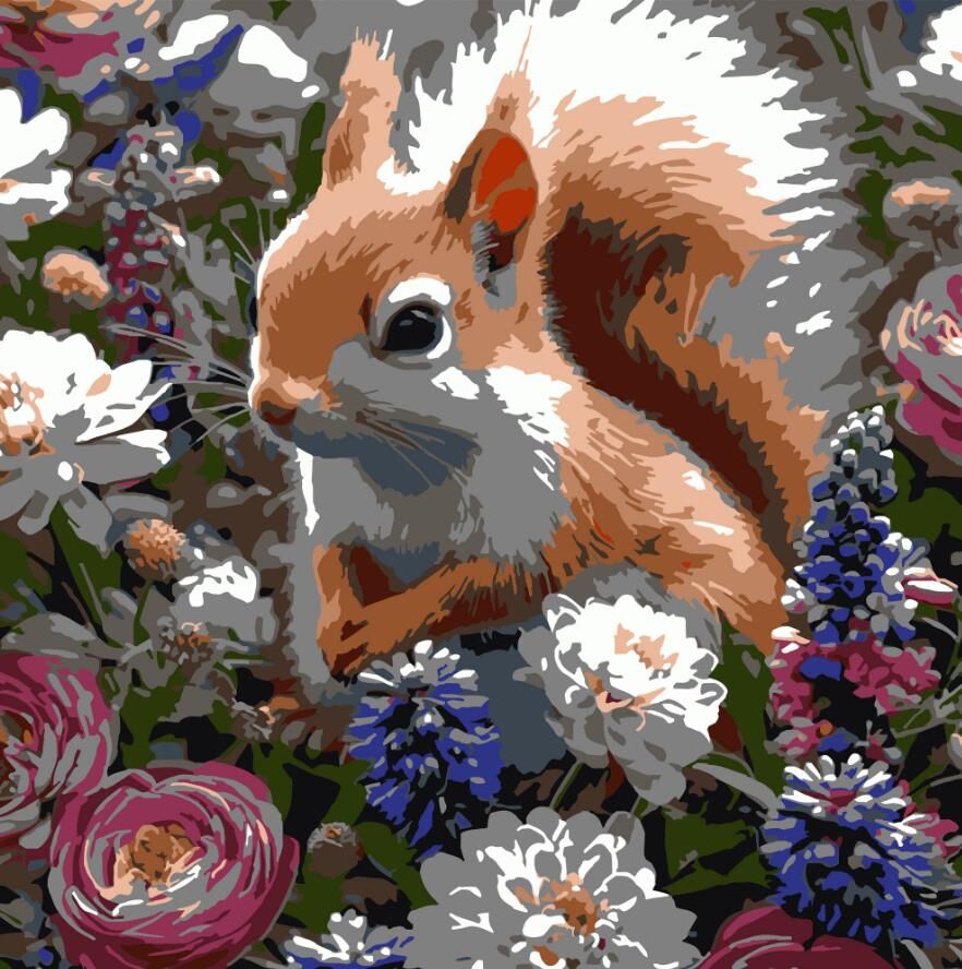 Розпис по номерах 30х30 ES0912 Білка серед квітів "Strateg"