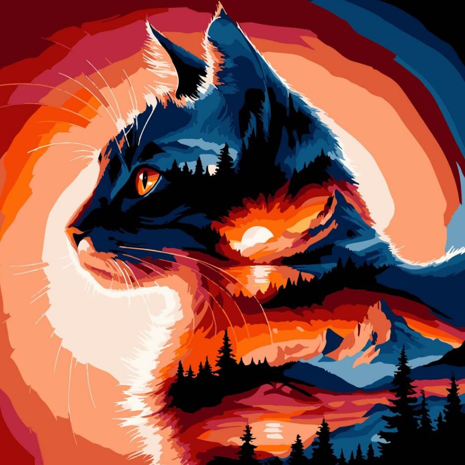 Розпис по номерах 30х30 SH3030-25 Кіт на заході сонця на чорному фоні "Strateg"