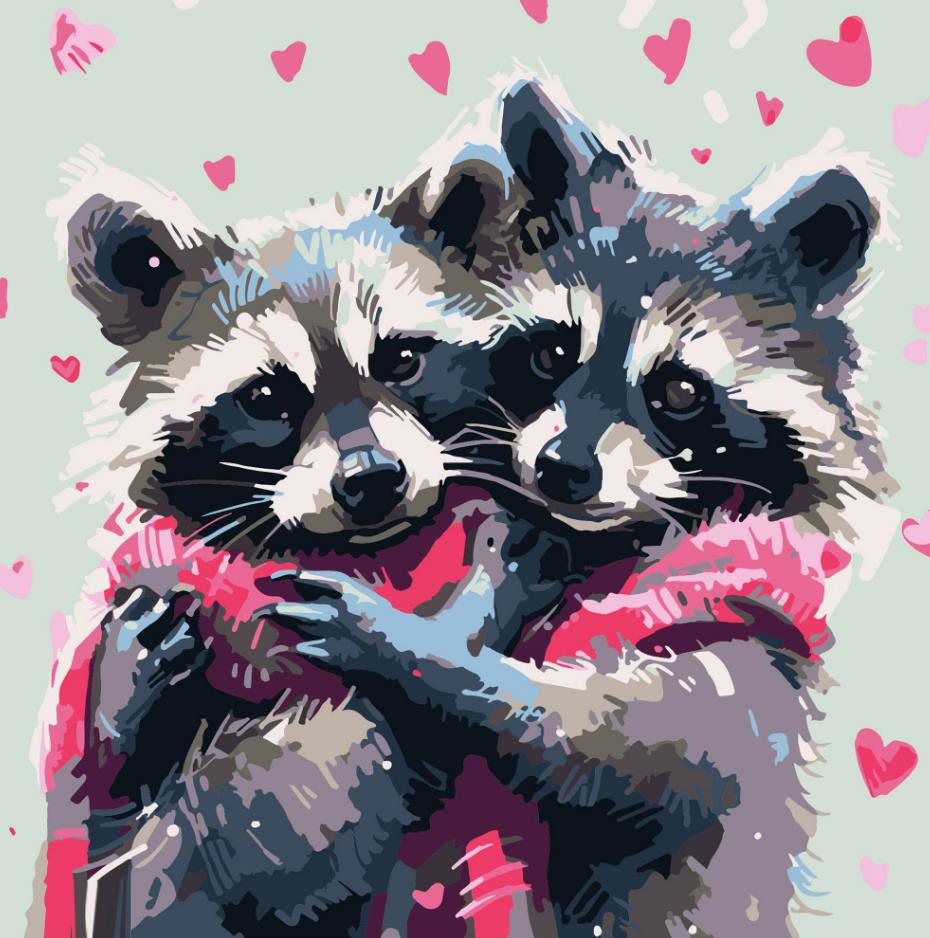 Розпис по номерах 30х30 SH3030-26 Обійми єнотів на чорному фоні "Strateg"