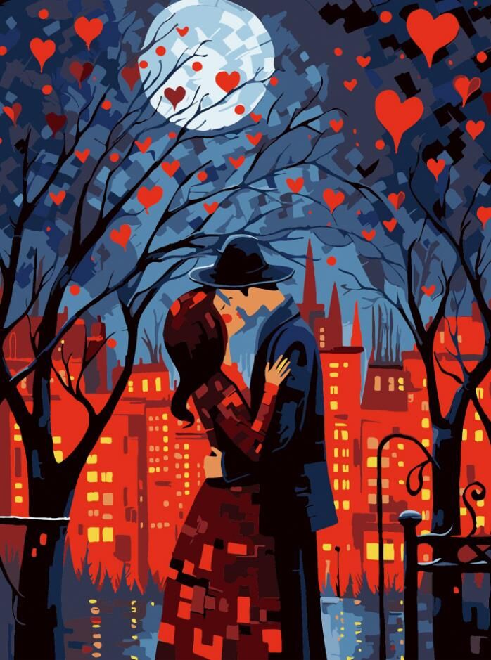 Розпис по номерах 30х40 FH-21 Поцілунок у місті на чорному фоні "Strateg"