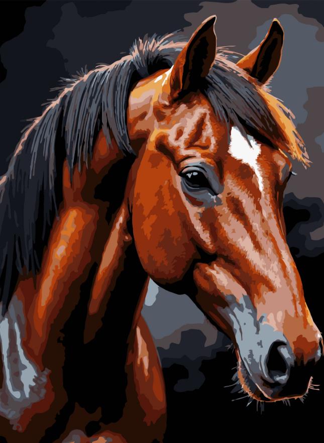 Розпис по номерах 30х40 FH-39 Коричневий кінь на чорному фоні "Strateg"