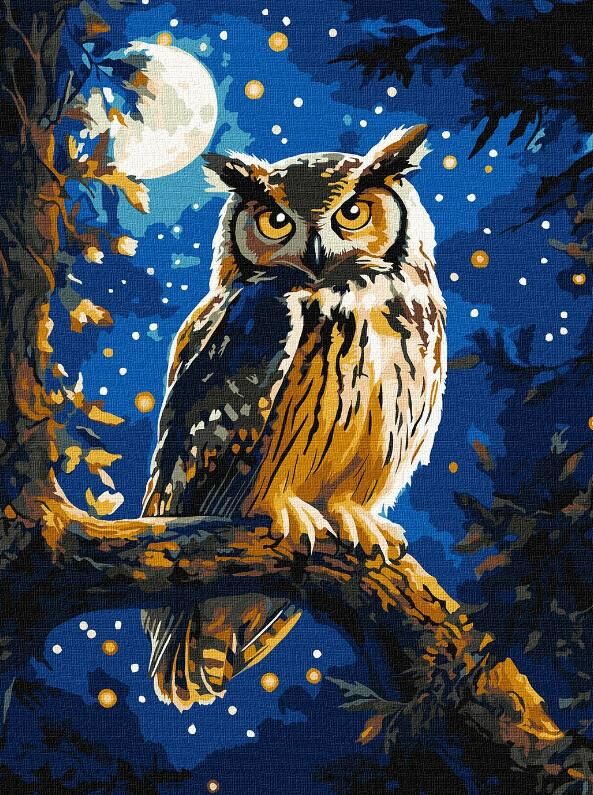 Розпис по номерах 30х40 КНО6681 Нічна сова з фарбами металік екстра "Ідейка"
