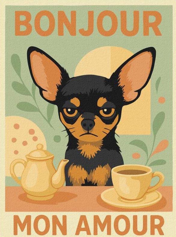 Розпис по номерах 30х40 КНО6808 Постер Ранок з чіхуахуа "Ідейка"