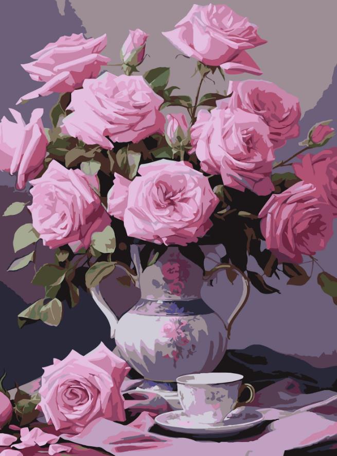 Розпис по номерах 30х40 SS-1247 Рожеві троянди "Strateg"