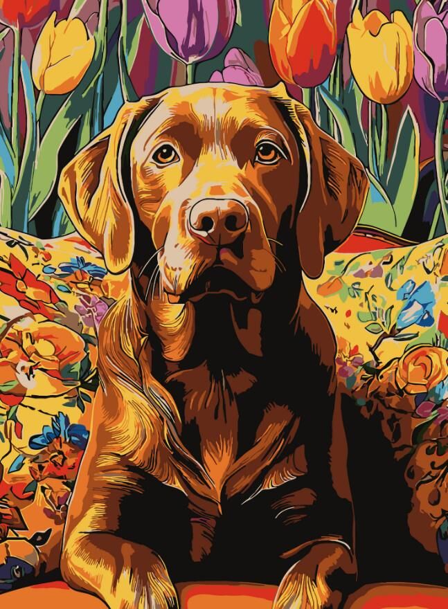 Розпис по номерах 30х40 SS-1288 Пес серед тюльпанів "Strateg"