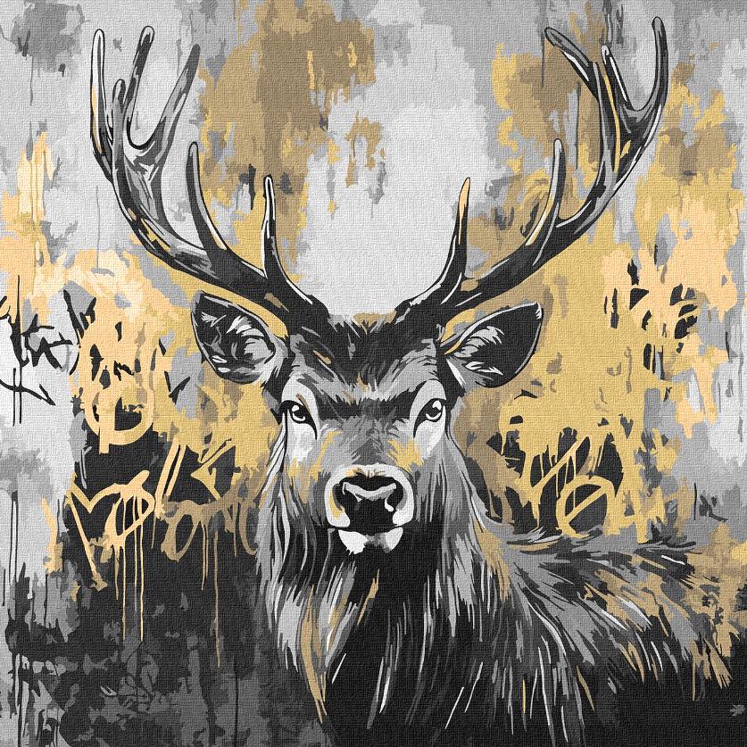 Розпис по номерах 40х40 КНО6725 Золотий олень з фарбами металік "Ідейка"