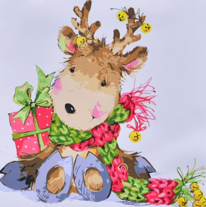 Розпис по номерах 40х40 SK061 Олень з подарунком "Strateg"
