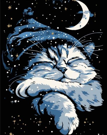 Розпис по номерах 40х50 AH1170-8 Кіт уві сні на чорному фоні "Strateg"