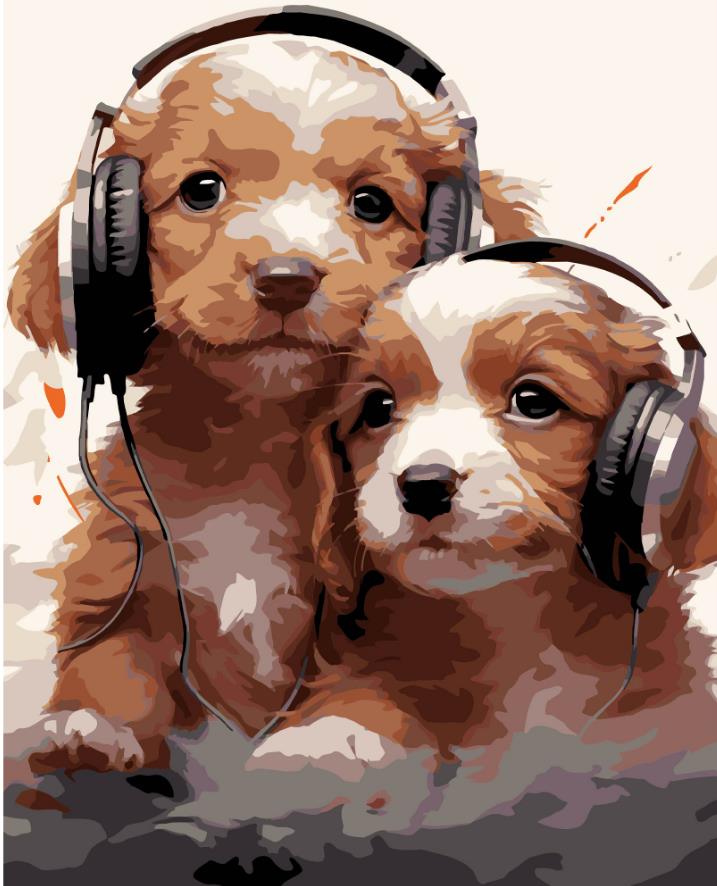Картина за номерами Strateg ПРЕМІУМ Цуценята в навушниках на чорному фоні розміром 40х50 см (AH1218-19)Картини за номерами від українського виробника Strateg поєднують творчість з грою. Вони розвивають фантазію, покращують пам'ять і дрібну моторику. А процес малювання знижує тривогу і знімає стрес. У наборі є все, щоб намалювати картину: