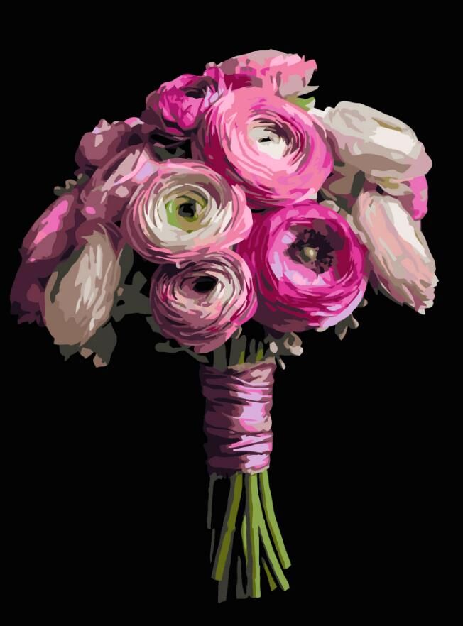Розпис по номерах 40х50 AH1248 Рожевий букет на чорному фоні "Strateg"