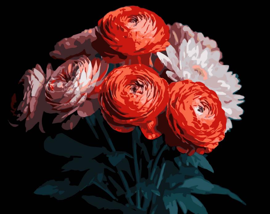 Розпис по номерах 40х50 AH1250 Червоні ранункулюси на чорному фоні "Strateg"