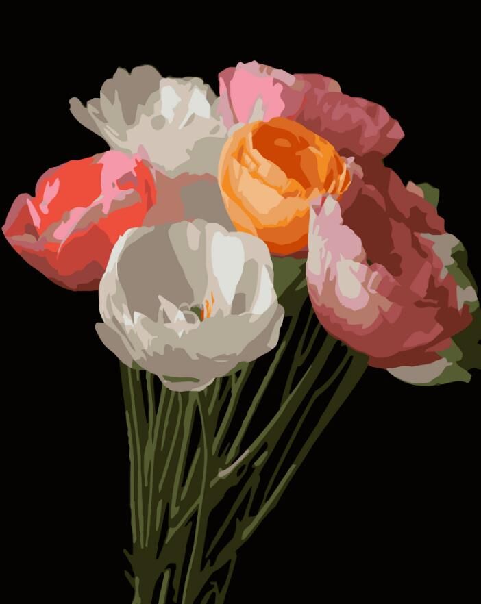 Розпис по номерах 40х50 AH1251 Весняний букет на чорному фоні "Strateg"
