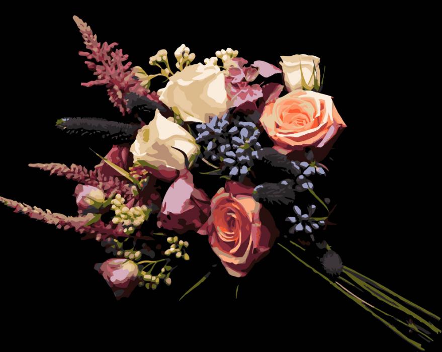 Розпис по номерах 40х50 AH1255 Святковий букет на чорному фоні "Strateg"