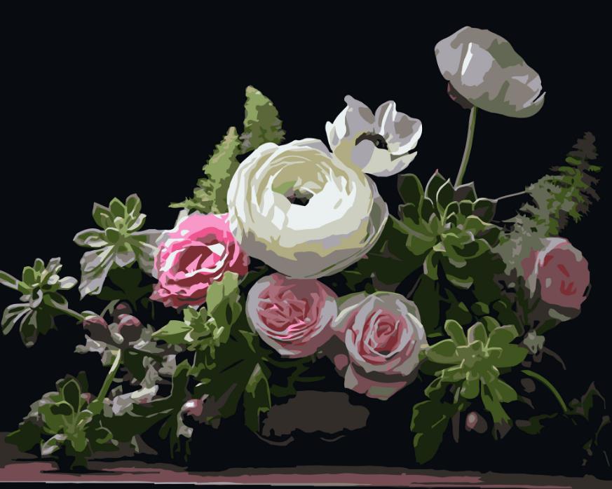 Розпис по номерах 40х50 AH1261 Ніжний квітковий натюрморт на чорному фоні "Strateg"