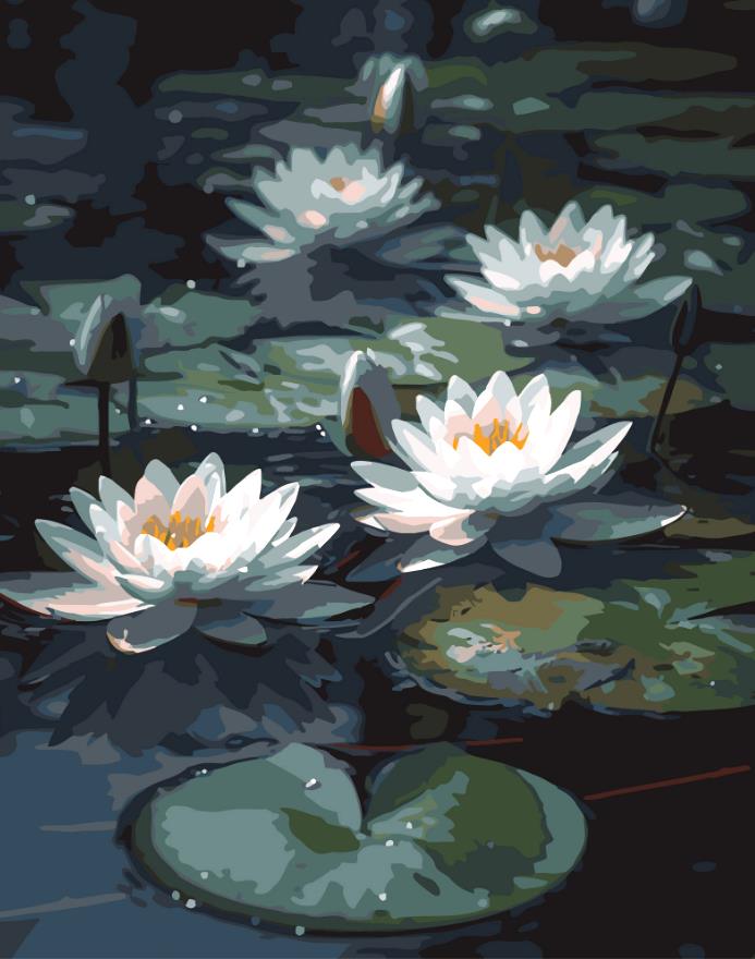 Розпис по номерах 40х50 AH1263 Водяні лілії на чорному фоні "Strateg"