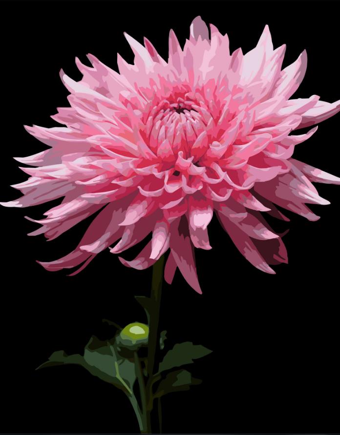 Розпис по номерах 40х50 AH1264 Рожева жоржина на чорному фоні "Strateg"