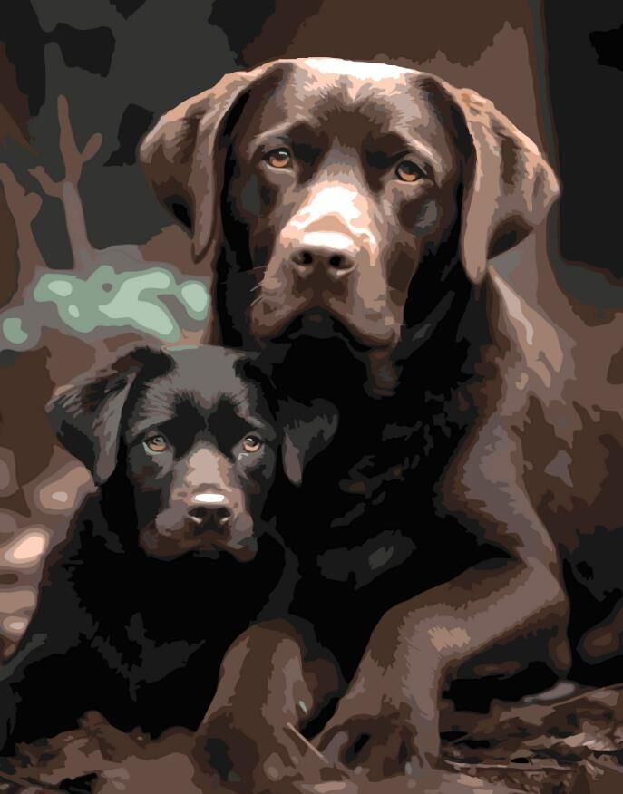 Розпис по номерах 40х50 AH1274 Пес з цуценям на чорному фоні "Strateg"