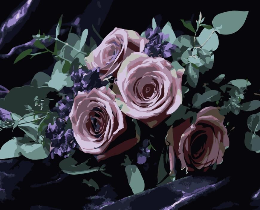Розпис по номерах 40х50 AH1292 Букет роз на чорному фоні "Strateg"