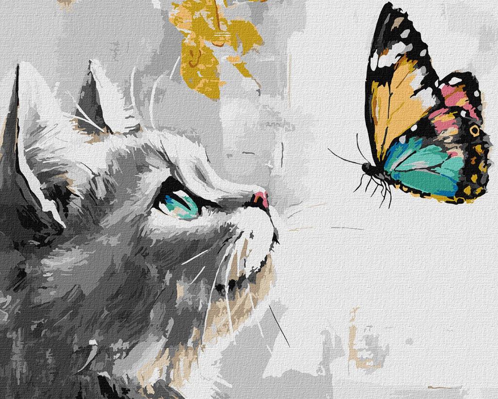 Розпис по номерах 40х50 КН06679 Мрійлива кішечка з фарбами металік "Ідейка"
