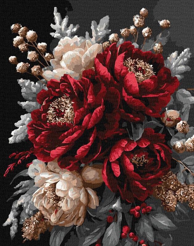 Розпис по номерах 40х50 КНО3343 Квітковий спокій з фарбами металік "Ідейка"