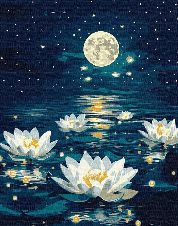 Розпис по номерах 40х50 КНО6391 Лотос під сяйвом з фарбами металік екстра "Ідейка"