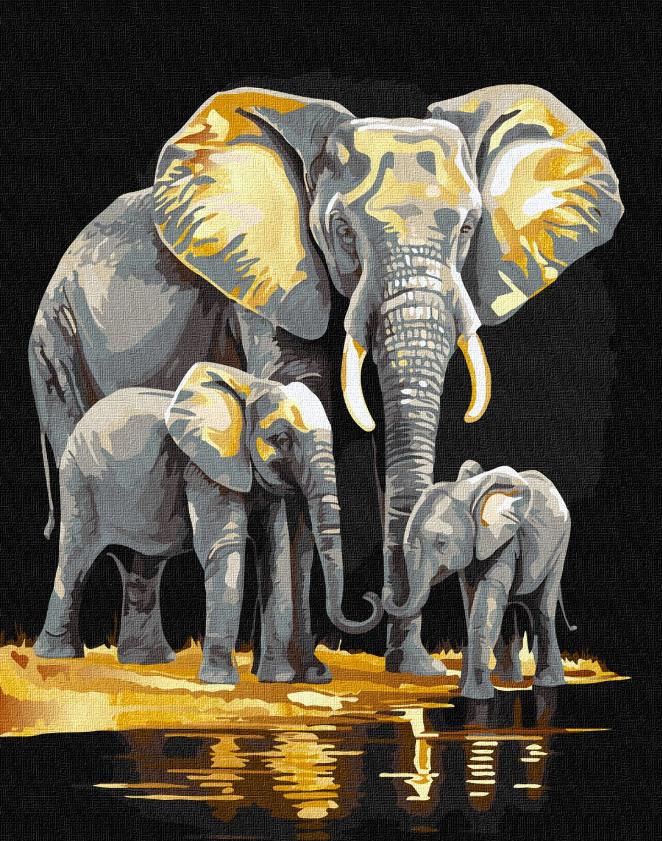 Розпис по номерах 40х50 КНО6530 Сімейство слонів з фарбами металік "Ідейка"