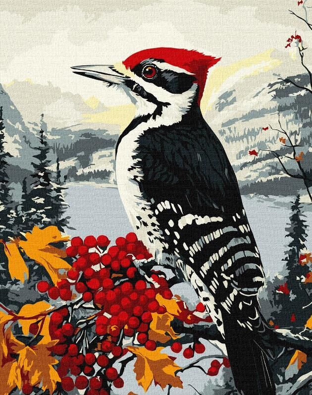 Розпис по номерах 40х50 КНО6777 Дятел на гілці "Ідейка"