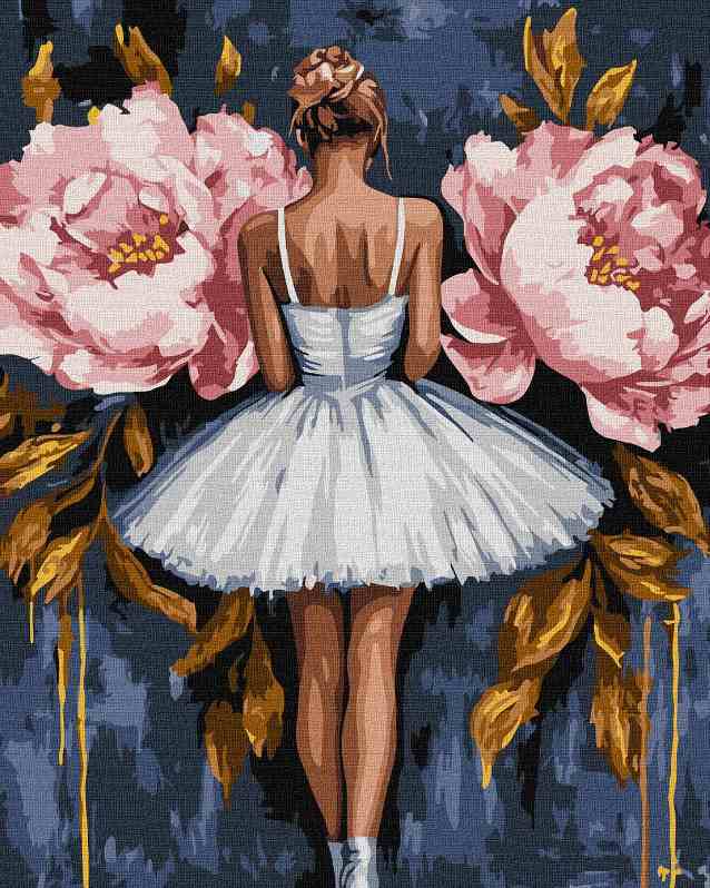 Розпис по номерах 40х50 КНО8662 Балерина з рожевими півоніями з фарбами металік "Ідейка"