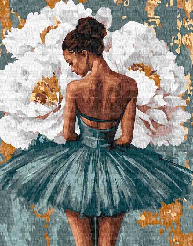 Розпис по номерах 40х50 КНО8663 Балерина з білими півоніями з фарбами металік "Ідейка"