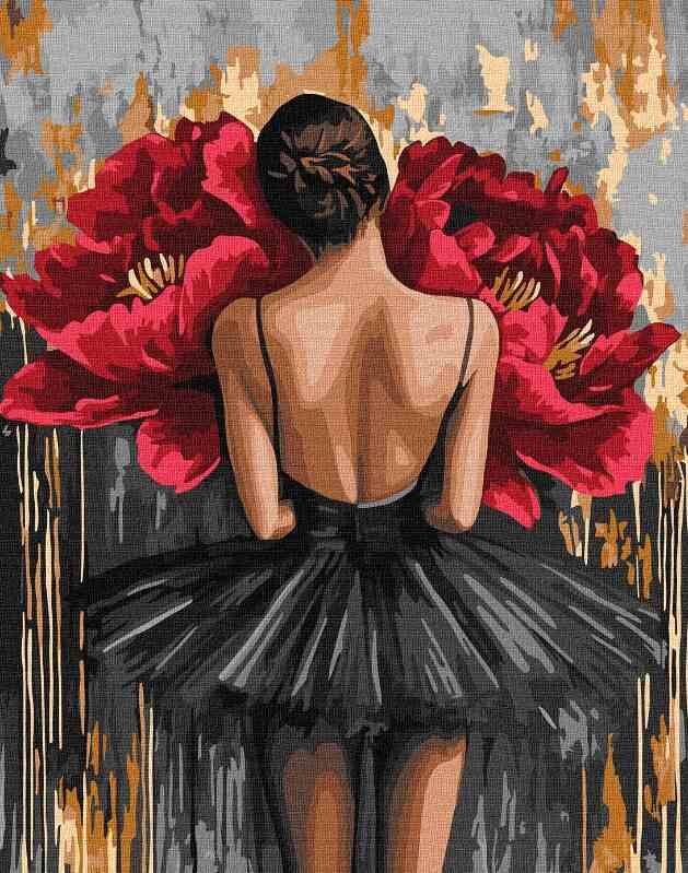 Розпис по номерах 40х50 КНО8664 Балерина з червоними півоніями з фарбами металік "Ідейка"