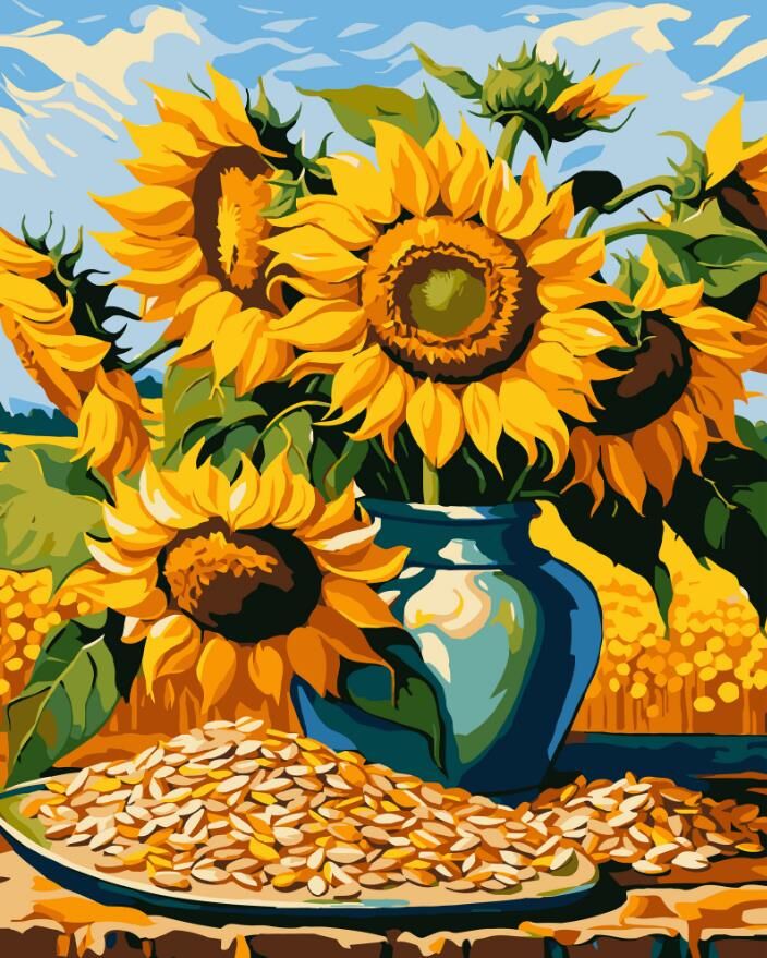 Розпис по номерах 40х50 VG027 Соняшники у вазі "Strateg"