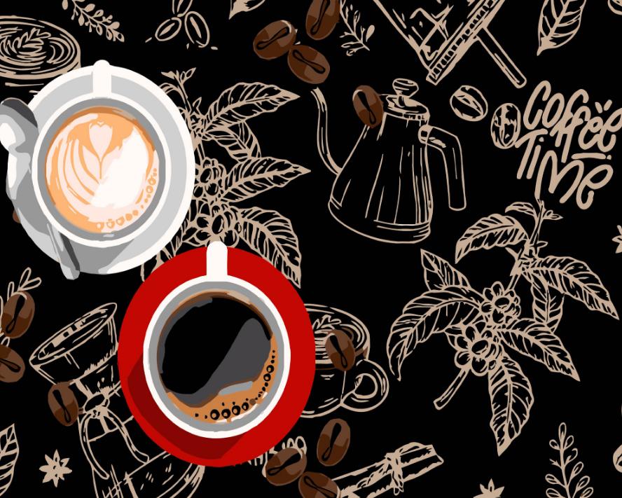 Розпис по номерах дві чашки кави на чорному фоні 40х50 AH1184-12