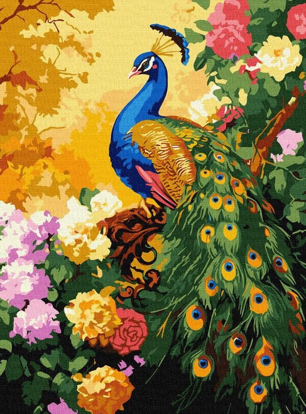 Розпис по номерах Павич у квітах 30х40 KHO6806