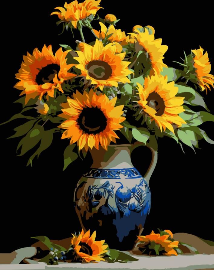 Розпис по номерах ваза з соняхами на чорному фоні 40х50 AH1174-16