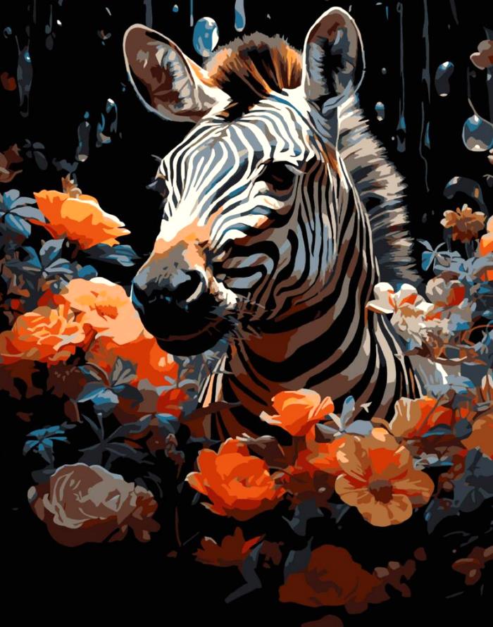 Розпис по номерах зебра у квітах на чорному фоні 40х50 AH1231-17